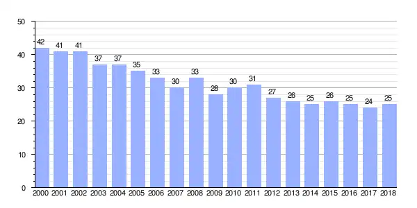 Gráfica de evolución demográfica de Muíños entre 2000 y 2018 |