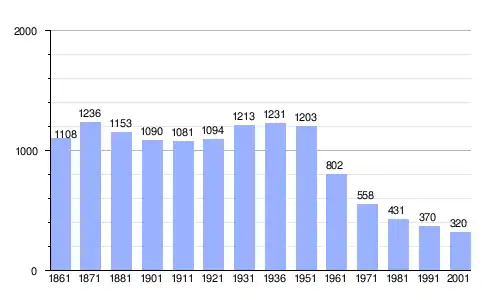 Gráfica de evolución demográfica de Mombarcaro entre 1861 y 2001 |