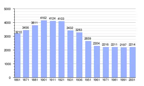 Gráfica de evolución demográfica de Mombercelli entre 1861 y 2001 |