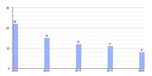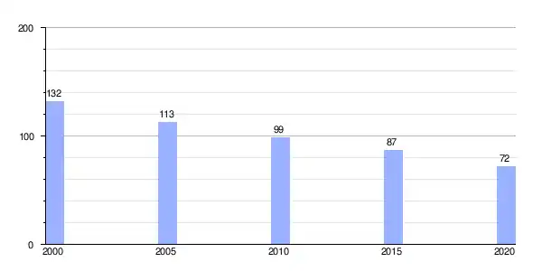 Gráfica de evolución demográfica de Monasterio (parroquia) entre 2000 y 2020 |