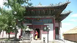 • El templo Vajradhara se inauguró en 1840 y es donde se realizan los servicios diarios. En su altar principal se halla una estatua de Vajradhara, un Buda de la práctica tántrica, esculpida por Zanabazar en 1683.