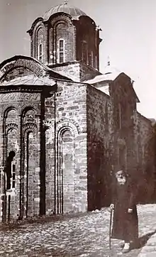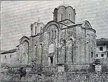 La parte más antigua de la iglesia, de 1341, tiene forma de cruz inscrita con una cúpula en el centro. Su arquitectura sigue los cánones bizantinos con capas alternas de ladrillo y piedra y arcos decorativos en dos niveles (similar a la Iglesia de San Miguel en Štip).[8]
