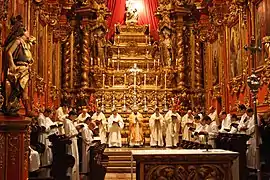 La bella capilla rococó del Santísimo Sacramento (1795 - 1800) es también obra de Inácio. Los lampadarios junto al ábside fueron proyectados y ejecutados entre 1781 y 1783 por Valentim da Fonseca e Silva (el Maestro Valentim). En la sacristía del monasterio, está la ópera prima del pintor Frei Ricardo, una pantalla representando el Señor de los Martirios, pintada cerca de 1690.