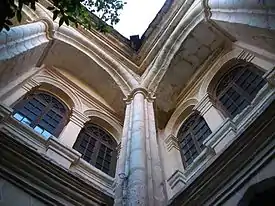En estudios recientes sobre la arquitectura del monasterio, se estima que el autor de la escalera de estilo gótico flamígero del claustro inferior, así como de las esculturas góticas del claustro superior, muy probablemente fue el propio taller de Pere Compte, arquitecto de la Lonja de Valencia.[1]