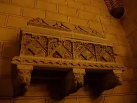 - Salón de Armas. En él destaca su techo medieval realizado en madera con escudos tallados del fundador del monasterio, junto a una colección de armas y diversa decoración medieval.