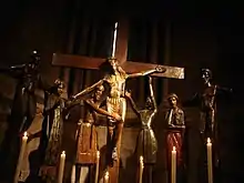 Destaca el conjunto escultórico del Descendimiento, tallado en el 1250 y considerado como una de las muestras más destacadas del románico catalán. Al retablo se le conoce también con el nombre del Santísimo Misterio ya que en 1426 se encontraron unos restos incorruptos en el interior de un relicario escondido en la cabeza de Cristo. Hay que señalar la tumba de Miró de Tagamanent, muerto en San Juan el 12 de septiembre de 1161 y al que se veneró como beato en el monasterio.