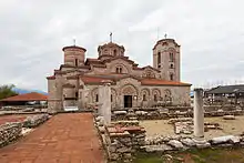 Se atribuye su construcción a Clemente de Ocrida, discípulo de los santos Cirilo y Metodio; el mismo llegó hasta Ohrid a pedido del zar Boris I de Bulgaria, y restauró una antigua iglesia. Como no estaba satisfecho con su tamaño, construyó una nueva y más grande, y se la dedicó al mártir San Pantaleimon o Pantaleón.