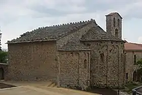 Destaca la iglesia románica del antiguo cenobio. Se trata de un templo de tres naves encabezadas por tres ábsides con decoración lombarda. Las plantas de cada nave son distintas entre sí, siendo las dos laterales más pequeñas que la nave central y una de ellas menor que la otra. Se comunican mediante dos arcadas de medio punto. La cubierta de las naves es de bóveda de cañón mientras que los ábsides están cubiertos con bóveda de horno.