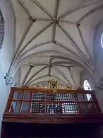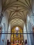 De estilo gótico y planta de cruz latina, el brazo mayor es una nave en cuatro tramos con bóvedas de crucería. Las claves están adornadas con el escudo de los Velasco, protectores del cenobio.