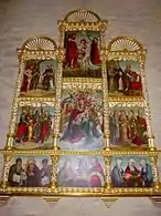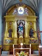 Cuenta con retablos barrocos del siglo XVII y en el coro está la imagen de Nuestra Señora de Bretonera, así como un órgano de 1799.