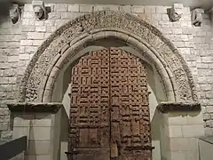 También, destaca la puerta mudéjar que en la actualidad se puede visitar en el Museo Frederic Marés de Barcelona.[14] Es una doble hoja de batientes con una decoración que forma una retícula geométrica, característica de la carpintería mudéjar de lo blanco[nota 2] aunque esta puerta estuvo policromada en algún momento y aun conserva restos de pintura. Data del siglo XIII.