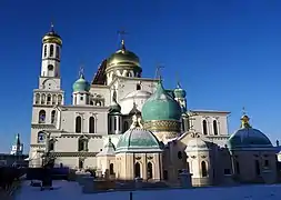 - el katholikon de la Resurrección (1656–1685) es una gran rotonda modelada según la Iglesia del Santo Sepulcro. La cúpula de madera y un grupo de capillas vecinas son de construcción posterior. Estas fueron diseñadas por Francesco Bartolomeo Rastrelli, Vincenzo Bernardacci, Karl Blank, Konstantin Thon, Matvéi Kazakov, Iakov Boukhvostov y otros arquitectos destacados del Imperio ruso.