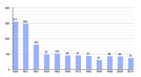 Gráfica de evolución demográfica de Monceaux-au-Perche entre 1800 y 2014 |