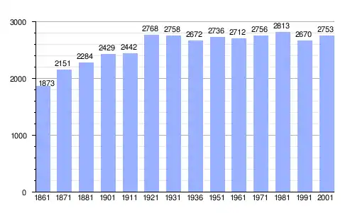 Gráfica de evolución demográfica de Moneglia entre 1861 y 2001 |