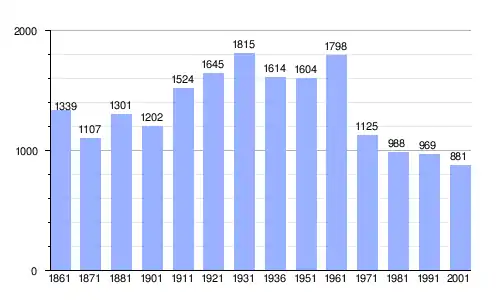 Gráfica de evolución demográfica de Mongiana entre 1861 y 2001 |