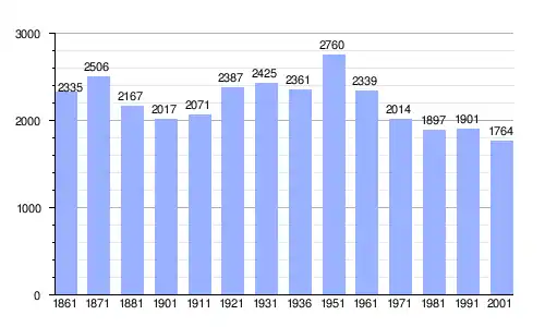 Gráfica de evolución demográfica de Mongrassano entre 1861 y 2001 |