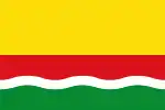 La bandera de Monistrol de Calders es una bandera apaisada de proporciones 2 de alto por 3 de largo. La mitad superior amarilla y la mitad inferior roja y verde con una franja ondulada de tres crestas blanca de un grosor 1/12 de la altura del paño, entre las partes roja y verde.[3]