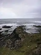 - A los pies y a la derecha del arco natural «Den's Door» (al norte de Broad Haven en la bahía de St Bride, Reino Unido) aparece «Sleek Stone«, una estructura rocosa inclinada de origen sedimentario, aparentemente monoclinal.
