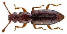 Monotoma longicollis es una especie de coleóptero de la familia Monotomidae. Mide de 1,4 a 1,9 mm.[1]