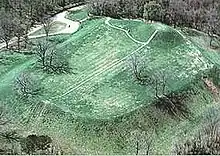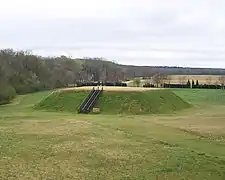 El Montículo del Monje o Monks, que tiene cuatro niveles separados y se sitúa cerca de los 30 m de altura; su construcción data del 900-955 y está ubicado en Cahokia Mounds cerca de Collinsville (Illinois) este montículo tenía al menos diez periodos separados de diferentes construcciones durante un período de 200 años. Algunas de las terrazas y lados del montículo parecen haber sido añadidas para detener la caída de la enorme montículo.[8]
