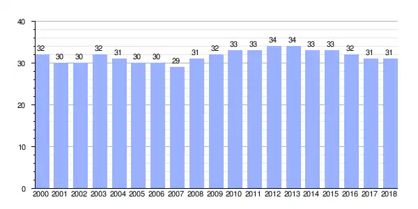 Gráfica de evolución demográfica de Montañó entre 2000 y 2018 |