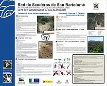 - Subida a Montaña Blanca.- Desde la Plaza del pueblo seguimos dirección suroeste por la calle La Degollada, convirtiéndose en camino de tierra. a mitad de ascensión tenemos una vereda que nos baja al camino del barranco y una vereda que comienza ascendente a subir a la Montaña, Pasa junto a unos corrales y la fuente de Montaña Blanca. Llegamos a la entrada de la Caldera, el cráter del cono volcánico, ascendemos al Pico de la Cruz y luego a la cima de la Montaña. El descenso puede ser por la vereda que baja zigzagueante por el interior de la caldera.