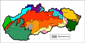 Localización de las montañas de Štiavnica en Eslovaquia (en gris).