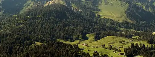 Las montañas del bosque de Bregenz, [1] también las montañas de Bregenzerwald ( en alemán, Bregenzerwaldgebirge), son una cordillera de los Alpes de piedra caliza del norte, que llevan el nombre de la ciudad de Bregenz. Las montañas del bosque de Bregenz están ubicadas por completo en el estado austriaco de Vorarlberg .