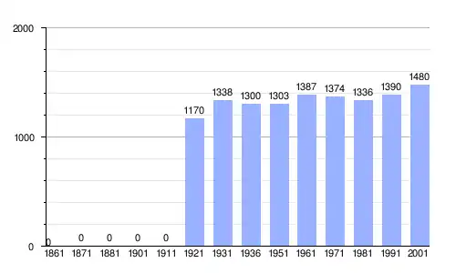 Gráfica de evolución demográfica de Montagna entre 1861 y 2001 |