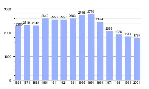 Gráfica de evolución demográfica de Montagnareale entre 1861 y 2001 |