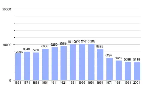 Gráfica de evolución demográfica de Montalcino entre 1861 y 2001 |