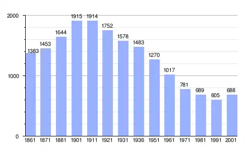 Gráfica de evolución demográfica de Montaldo Scarampi entre 1861 y 2001 |