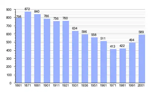 Gráfica de evolución demográfica de Montaldo Torinese entre 1861 y 2001 |