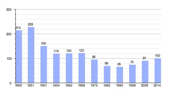 Gráfica de evolución demográfica de Montamy entre 1800 y 2014 |