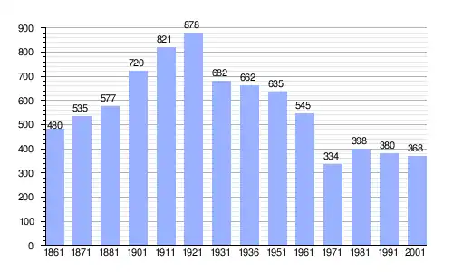 Gráfica de evolución demográfica de Montasola entre 1861 y 2001 |