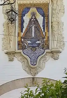 En la fachada de la calle Navarro Caro, bajo el mirador de la torre del molino, aparece un cuadro de azulejos enmarcado con retablo en el que se lee: Milagrosa Ymagen de Ntrª Sª de las Nieves, patrona de Arcos de la Frontera, colocada en este sitio a devoción de D. Luis Ortiz de Zúñiga. Año de 1763.
