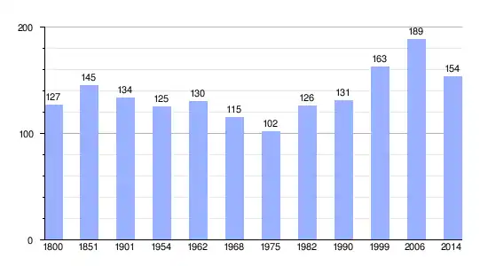 Los datos demográficos contemplados en este gráfico de la comuna de Monteille[4] se han cogido de 1800 a 1999 de la página francesa EHESS/Cassini, y los demás datos de la página del INSEE.[5]