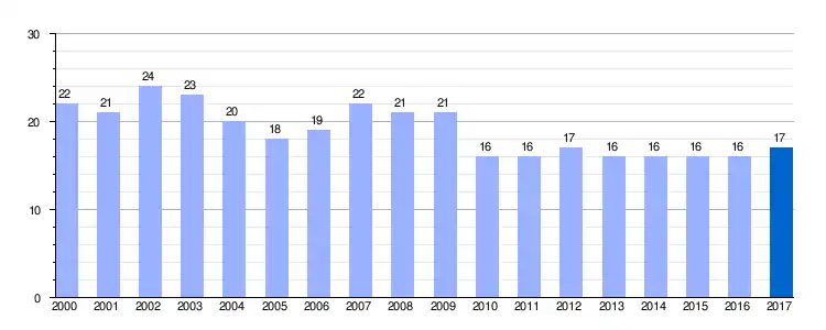 Gráfica de evolución demográfica de Montejo de San Miguel entre 2000 y 2017 |