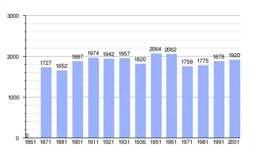 Gráfica de evolución demográfica de Montelanico entre 1861 y 2001 |