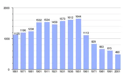 Gráfica de evolución demográfica de Montelongo entre 1861 y 2001 |