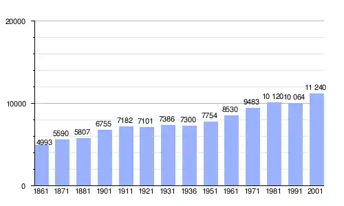Gráfica de evolución demográfica de Montelupo Fiorentino entre 1861 y 2001 |