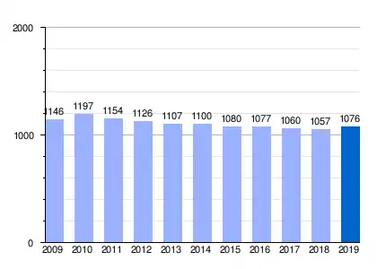 Gráfica de evolución demográfica de Monteluz entre 2009 y 2019 |