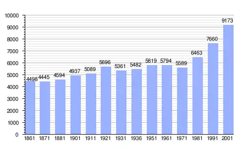 Gráfica de evolución demográfica de Montemarciano entre 1861 y 2001 |