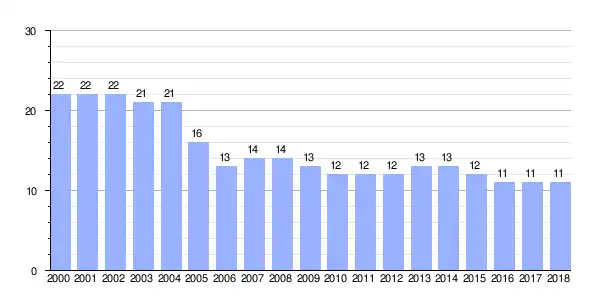 Gráfica de evolución demográfica de Montemeá entre 2000 y 2018 |