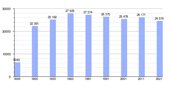 Gráfica de evolución demográfica de Montemor-o-Velho entre 1849 y 2021 |
