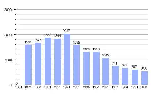 Gráfica de evolución demográfica de Montenars entre 1861 y 2001 |
