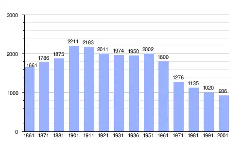 Gráfica de evolución demográfica de Montenerodomo entre 1861 y 2001 |
