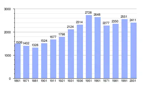 Gráfica de evolución demográfica de Monteparano entre 1861 y 2001 |