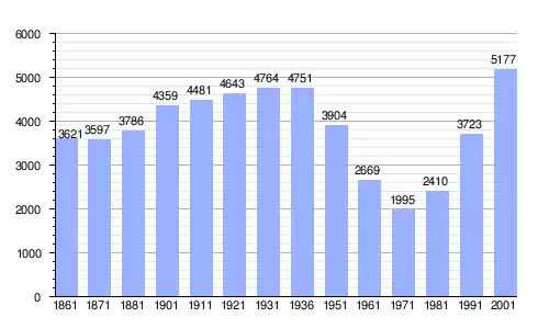 Gráfica de evolución demográfica de Monterenzio entre 1861 y 2001 |