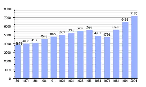 Gráfica de evolución demográfica de Monteroni d'Arbia entre 1861 y 2001 |